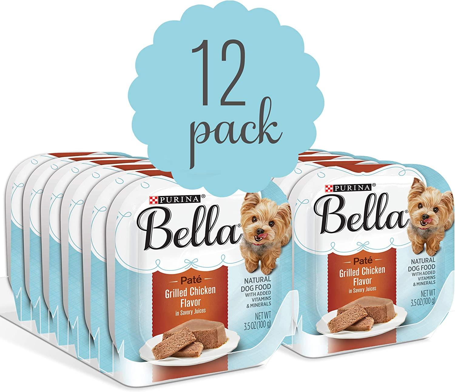 Deliver big taste in a small meal your little princess can sink her teeth into with Purina Bella Grilled Chicken Flavor in Savory Juices adult wet dog food. Every container of this grilled chicken flavored pate treats her to full flavor, and savory juices tempt her taste buds. You can appreciate the fact that you’re giving her essential nutrition to help support overall good health. Protein helps to support her strong muscles in this nutrient-dense recipe that’s designed for the higher metabolism of small dogs. Natural with added vitamins and minerals, this high-quality adult dog food is made with small dogs in mind, so she gets everything she needs for a day playing. Made in a small size for small dogs, this meal offers a blend of antioxidants to help support her immune system. Tender pate full of flavor makes it easy for her to get a mouthful. It’s an inviting dish with rich grilled chicken flavor, letting you indulge your small dog in the manner she deserves.Protein-rich formula to help support strong muscles. No artificial flavors, colors, or preservatives. Blend of antioxidants to help support your small dog’s immune system. Nutrient-dense recipe to help support the higher metabolism of small dogs. Formulated for small adult dogs. Small-sized tray for small breed dogs. Natural with added vitamins and minerals. Supports health throughout the longer life expectancy of small dogs. Twelve (12) 3.5 oz. Trays – Purina Bella Natural Small Breed Pate Wet Dog Food, Grilled Chicken Flavor in Savory Juices.Best Sellers Rank: See Top 100 in Pet Supplies. Item Form: Pate. Target Species: Dog. Age Range Description: Adult. Flavor: Chicken. Brand: Bella. Country of Origin: USA. : B06W5H4JVZ. Manufacturer: Nestle Purina Pet. Date First Available: February 14, 2017. Item model number: 050000004928. Product Dimensions: 3.7 x 3.15 x 1.15 inches; 3.17 Pounds. Is Discontinued By Manufacturer: No.
